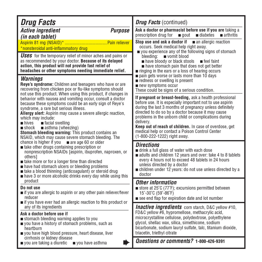 Low Dose Aspirin, 81 Mg, 730 Tablets